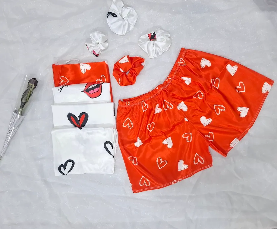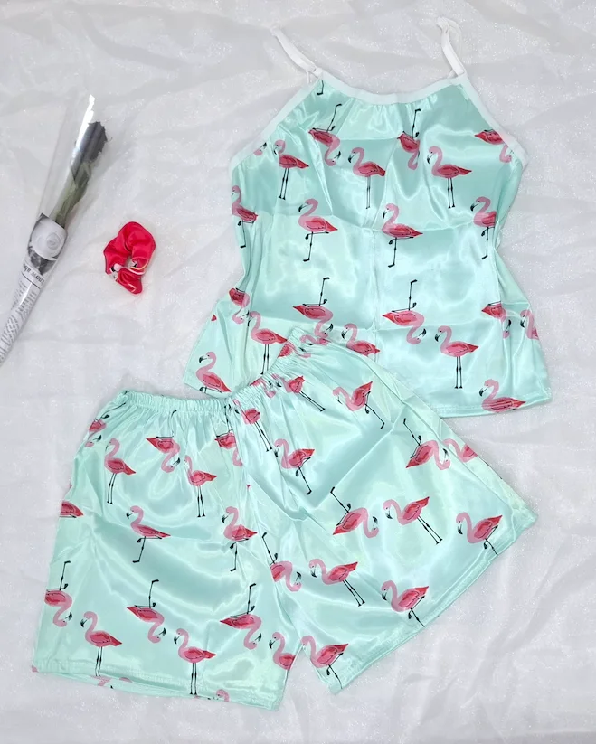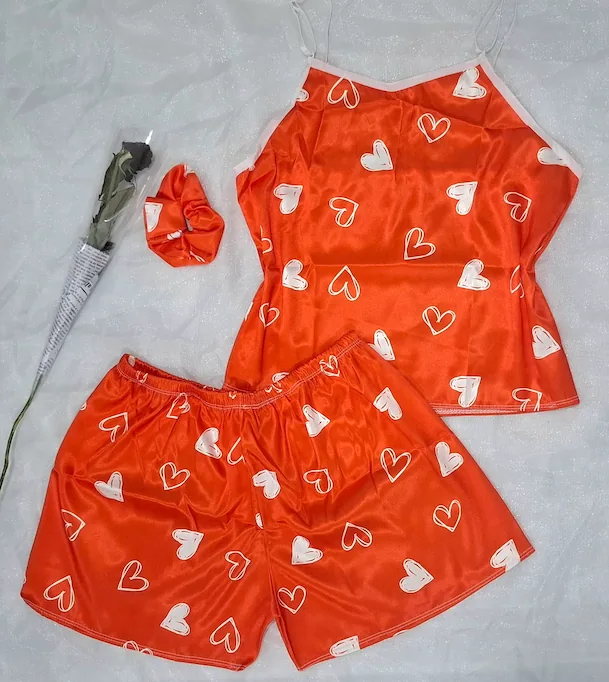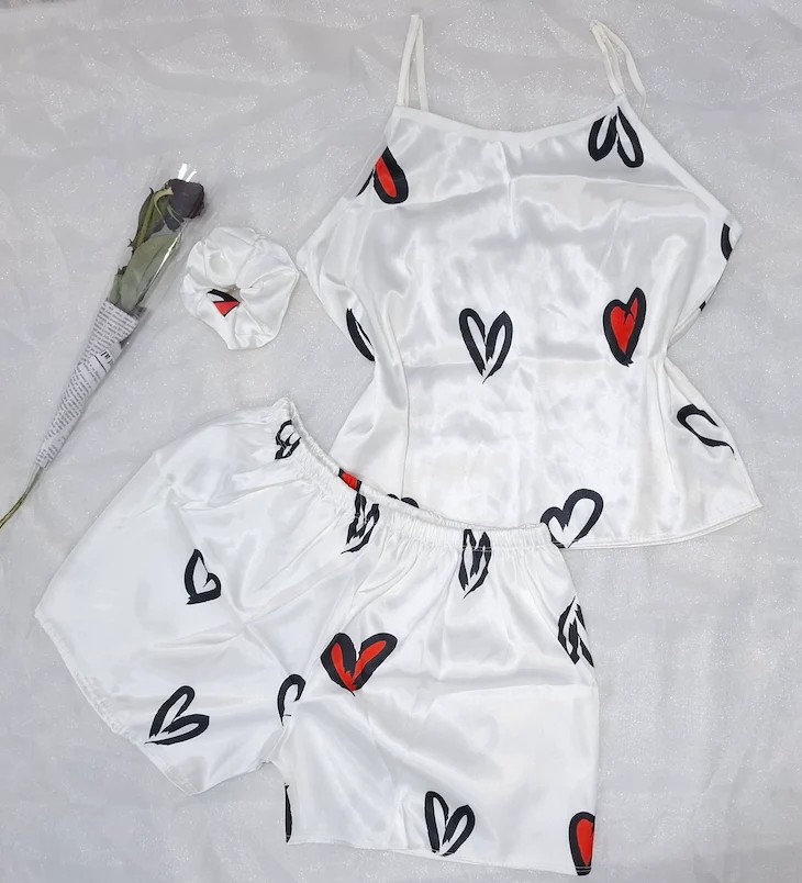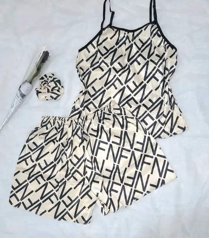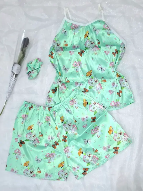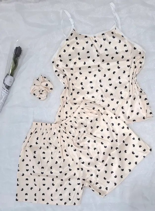 لباس خواب زنانه سه تیکه ساتن طرح دار